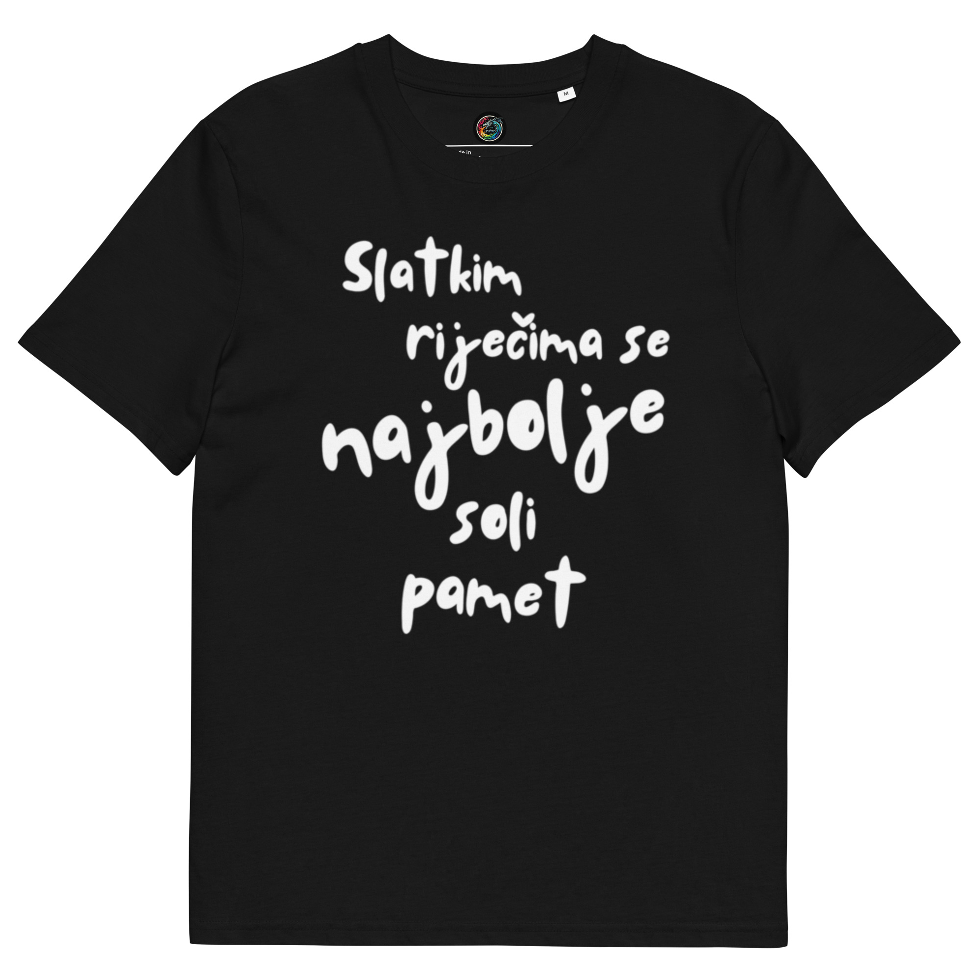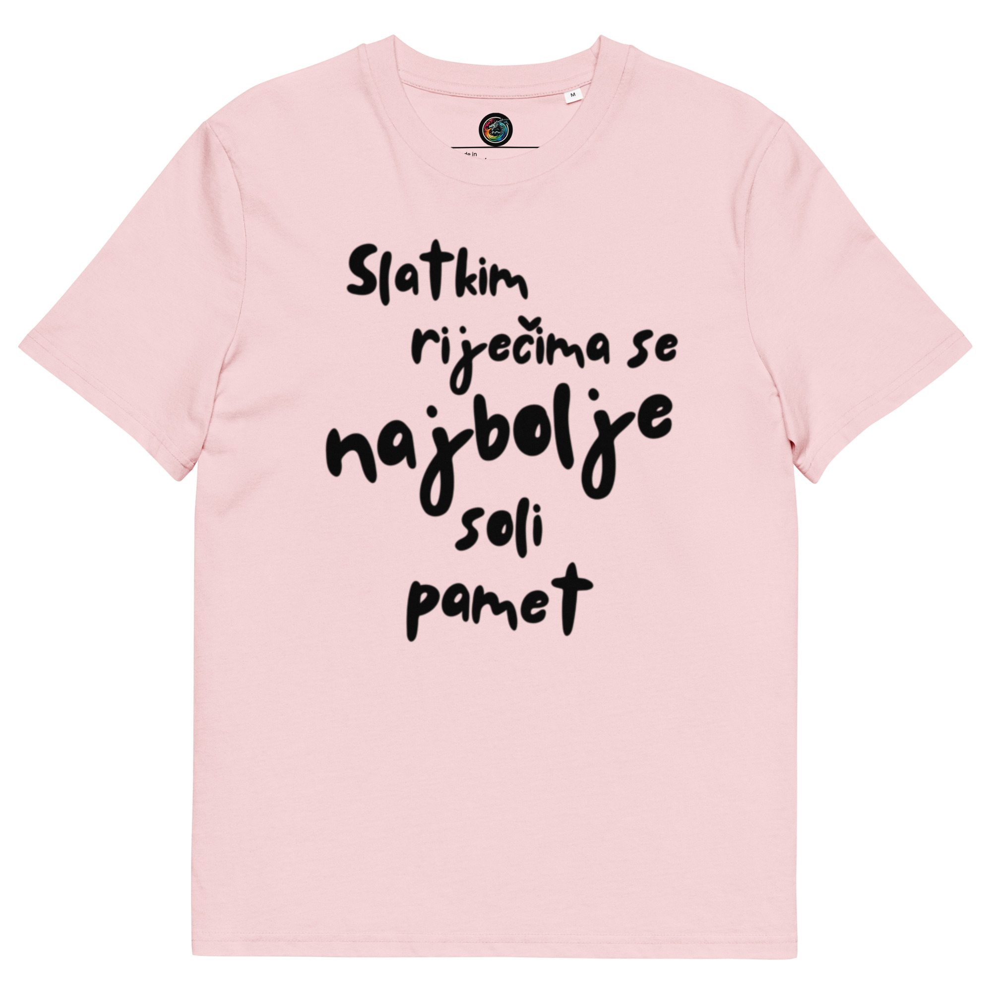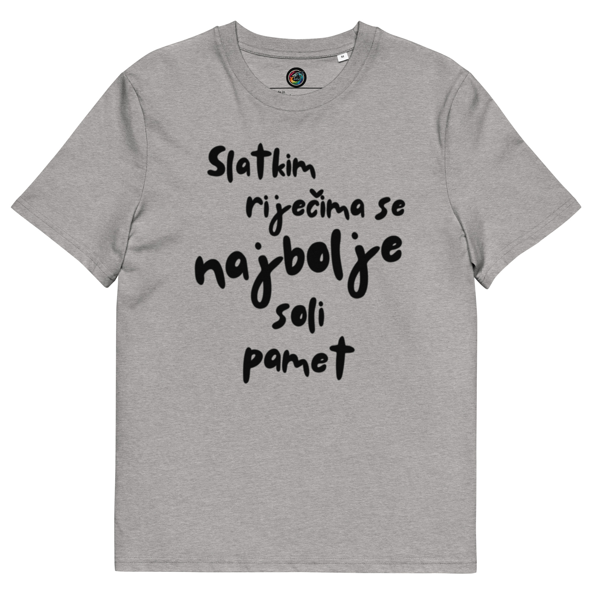 Kratka majica s natpisom “Slatkim riječima se najbolje soli pamet” – organski pamuk