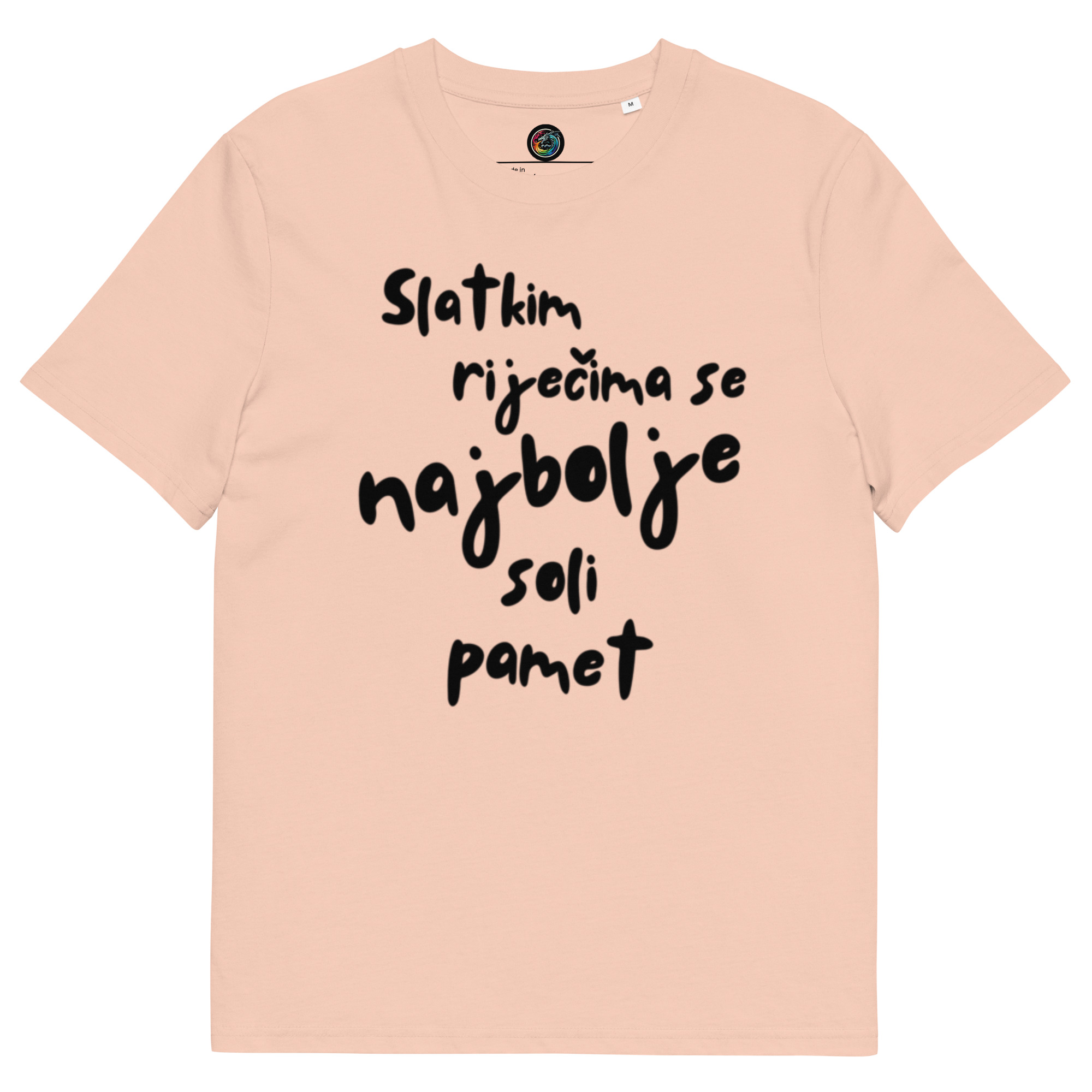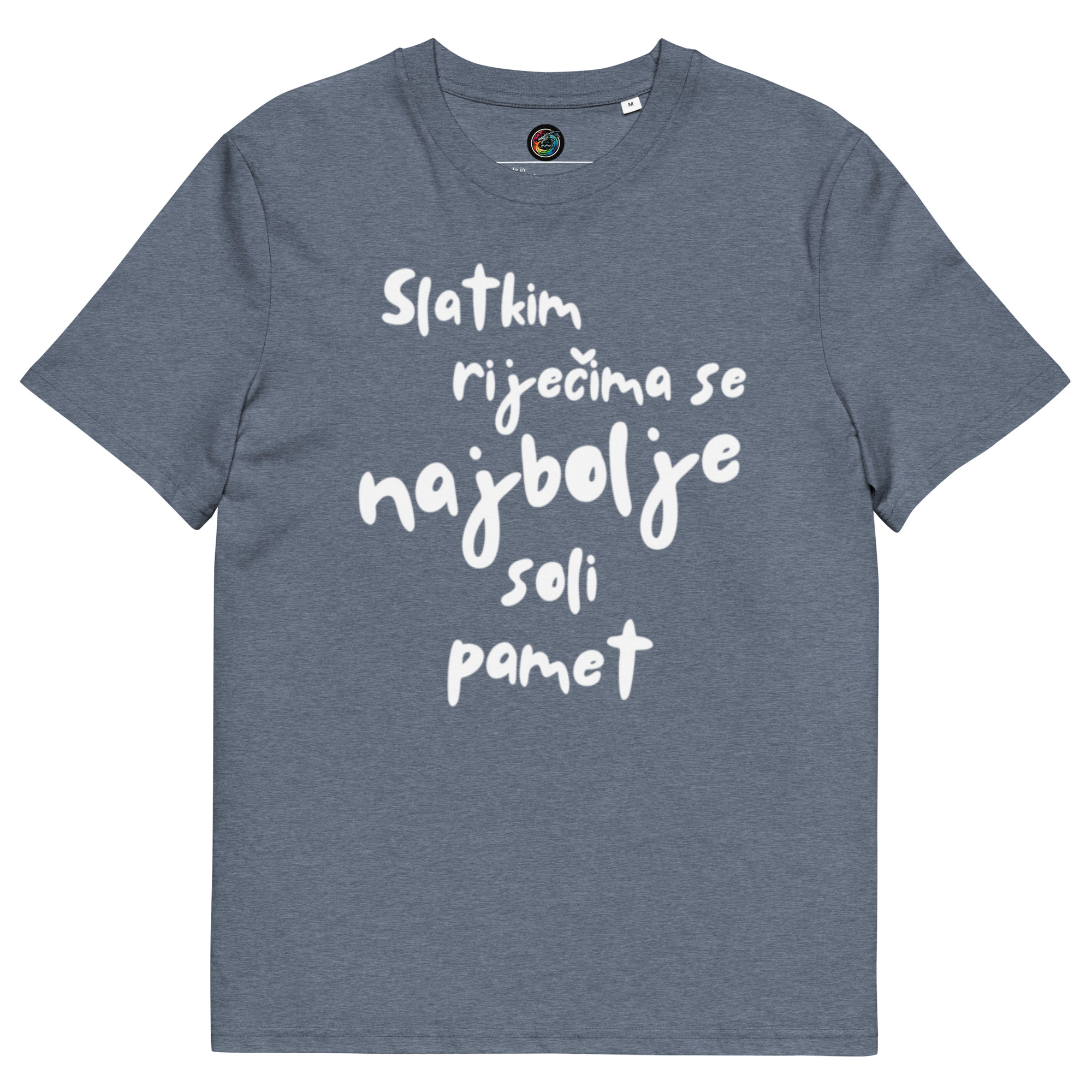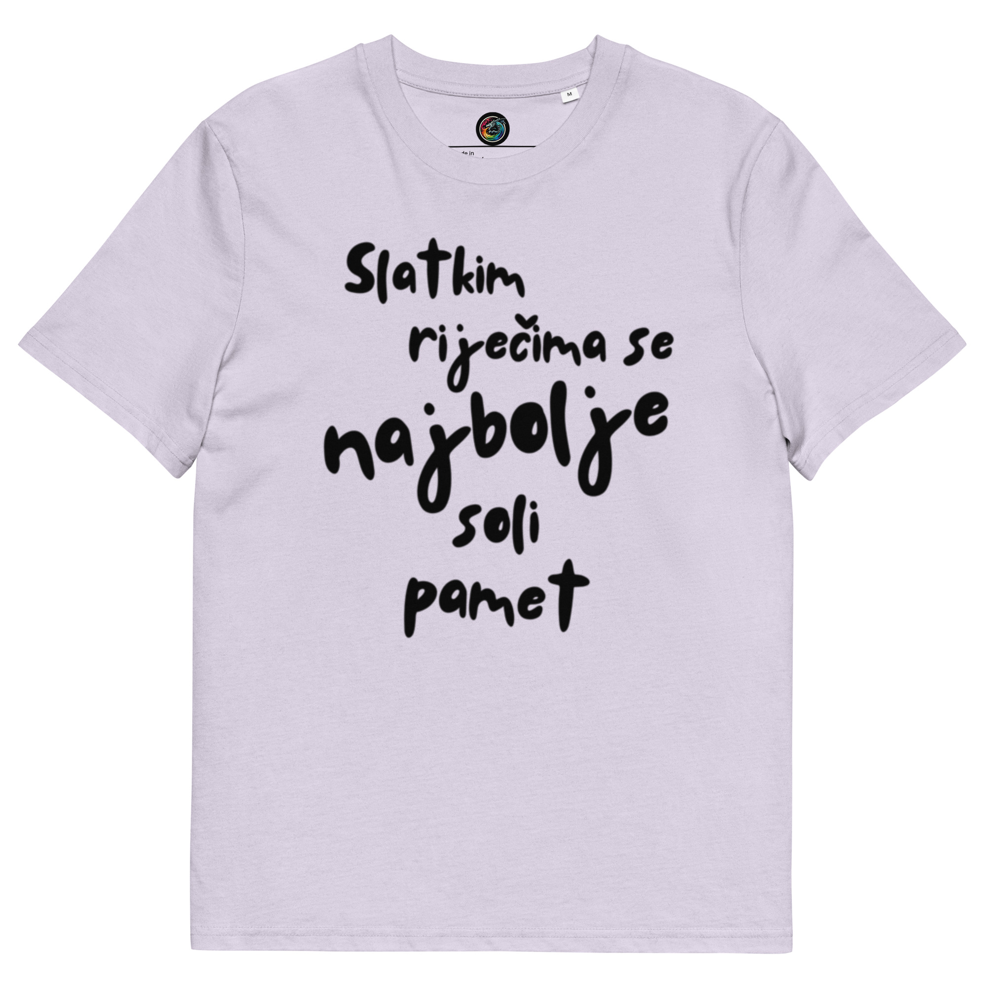 Kratka majica s natpisom “Slatkim riječima se najbolje soli pamet” – organski pamuk