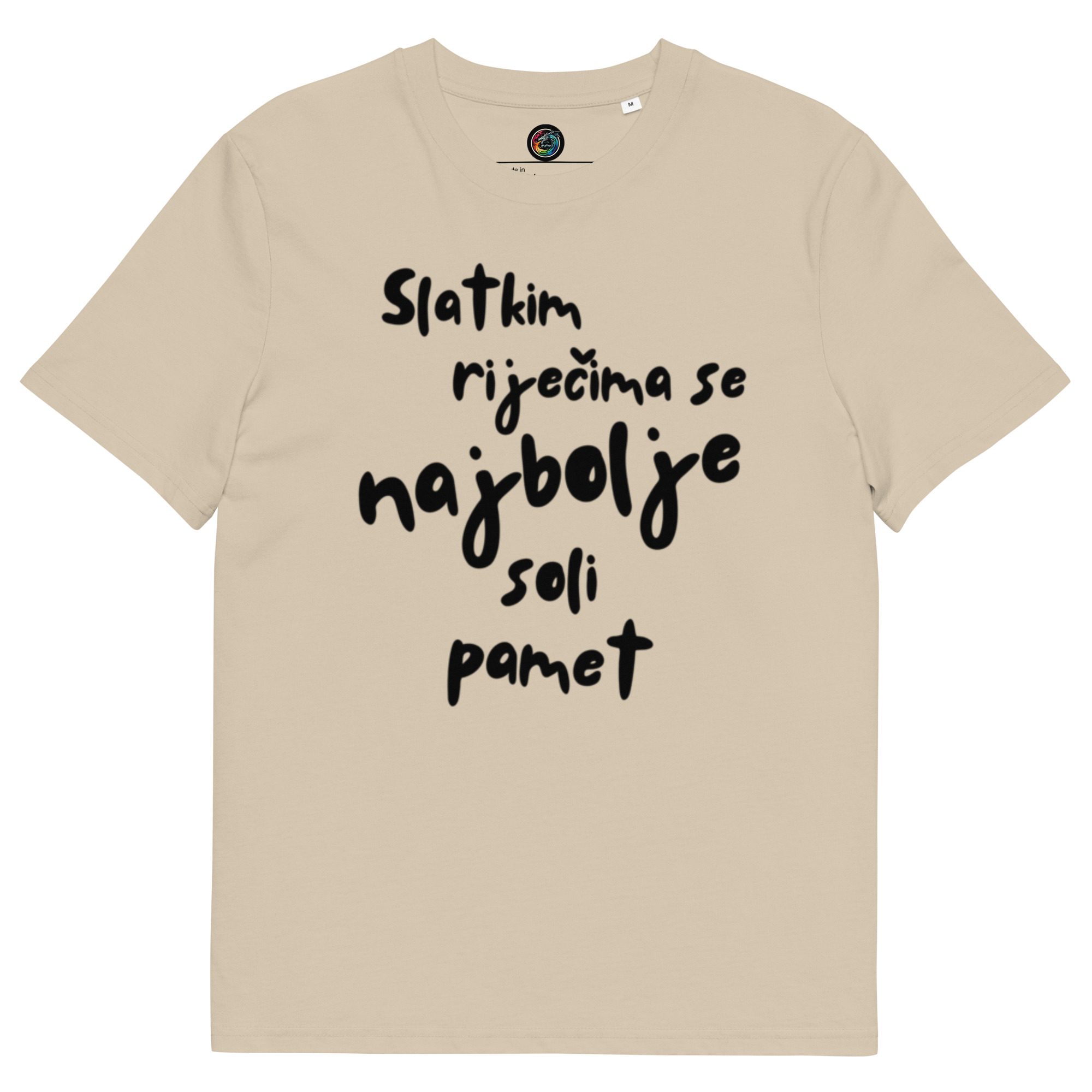 Kratka majica s natpisom "Slatkim riječima se najbolje soli pamet" - organski pamukKratka majica s natpisom “Slatkim riječima se najbolje soli pamet” – organski pamuk